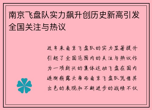 南京飞盘队实力飙升创历史新高引发全国关注与热议